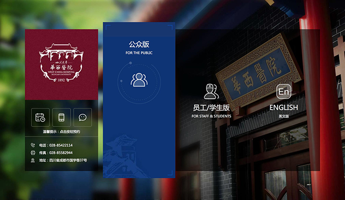 網(wǎng)站設(shè)計靈感源于華西醫(yī)院院訓(xùn)“厚德精業(yè)、求實創(chuàng)新”,取“厚”和“新”,兩字對比,展現(xiàn)華西風(fēng)采,厚代表華西百年厚重歷史和醫(yī)學(xué)功底,新代表華西科學(xué)技術(shù)及創(chuàng)新精神。網(wǎng)站著重在百年華西欄目去設(shè)計厚重感,穿插傳統(tǒng)紋樣元素體現(xiàn)百年華西的歷史底蘊。全站板塊化排版設(shè)計,采用不規(guī)則的內(nèi)容布局,整體風(fēng)格上體現(xiàn)新的特性,而功能上與his系統(tǒng)對接,實現(xiàn)預(yù)約掛號,醫(yī)生出停診等信息查詢。極大提升了患者及瀏覽者的便捷體驗。