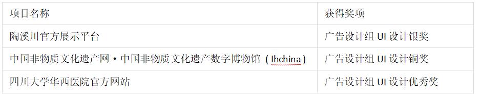 2020年9月8日,第20屆IAI國際廣告獎新鮮出爐。在備受關(guān)注的廣告設(shè)計組UI設(shè)計獎中,由分形科技設(shè)計的陶溪川官方展示平臺、中國非物質(zhì)文化遺產(chǎn)網(wǎng)·中國非物質(zhì)文化遺產(chǎn)數(shù)字博物館(Ihchina)、四川大學(xué)華西醫(yī)院官方網(wǎng)站,3個UI設(shè)計作品在一眾候選名單中“脫穎而出”,分別獲得廣告設(shè)計組UI設(shè)計銀獎、廣告設(shè)計組UI設(shè)計銅獎、廣告設(shè)計組UI設(shè)計優(yōu)秀獎。