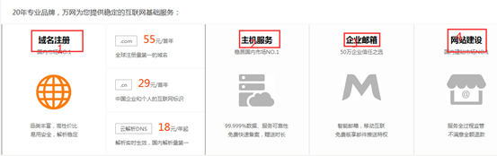 萬網(wǎng)包括域名注冊、主機(jī)服務(wù)、企業(yè)郵箱、網(wǎng)站建設(shè)4部分。