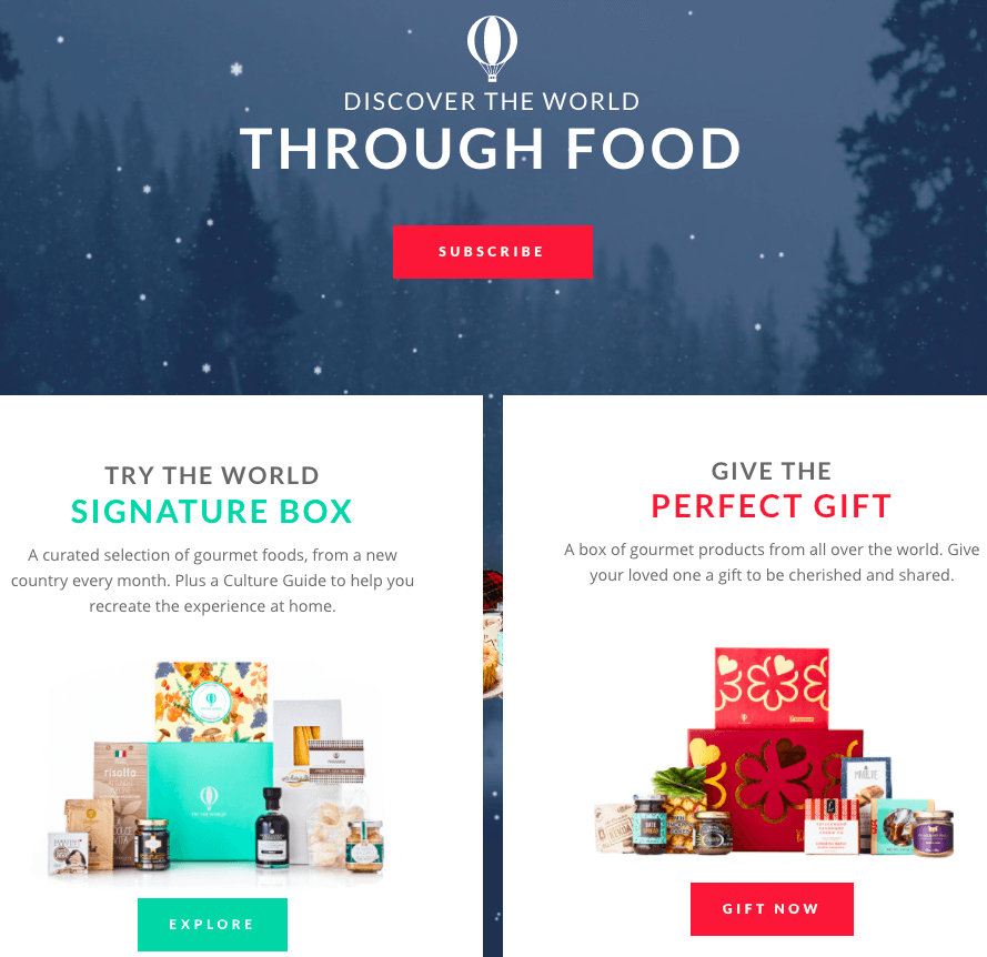 Try the World 創(chuàng)辦的概念有點(diǎn)類似于此。創(chuàng)辦人因?yàn)橄矚g旅行和美食,對于在異國嘗到的料理常常難以忘懷,便想要在自己的家里重現(xiàn)他們在旅行時的當(dāng)?shù)刈钕矚g的菜,然而礙于異國食材在美國取得不易,于是他們便創(chuàng)辦了Try the World,讓人們可以透過在家里訂購他們?yōu)槟闩渲煤玫漠悋侠戆l(fā)現(xiàn)盒,環(huán)游世界的飲食文化。