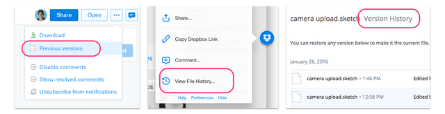 在 Dropbox 中,我們發(fā)現(xiàn) “版本紀(jì)錄" 的功能描述用了不同的詞匯,如下: