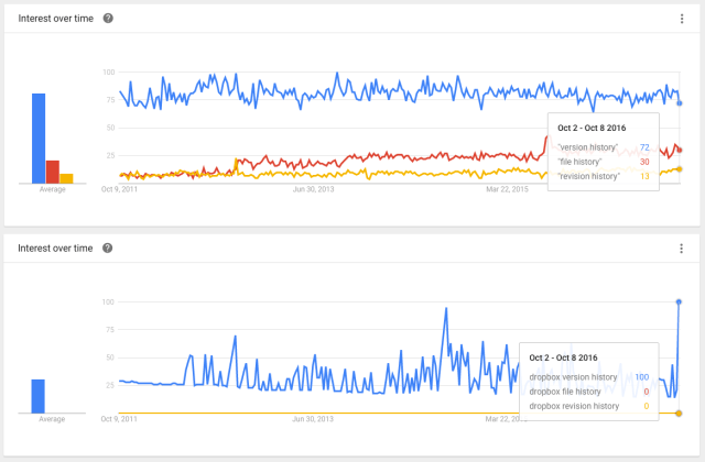 Google Trends 告訴我們,人們較常檢索 “version history” ,這也是最后應(yīng)用這個詞于產(chǎn)品的主因。