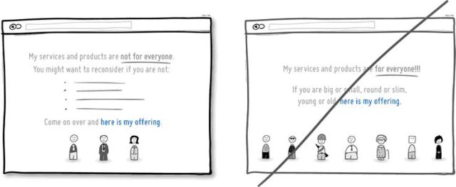 描述或限制適合產(chǎn)品或服務(wù)的目標(biāo)族群,可以幫助網(wǎng)站找到更多相似特質(zhì)的使用者,也更具特色,同時(shí)讓使用者感到自己具獨(dú)特性。然而,使用這樣策略具有風(fēng)險(xiǎn),可能讓你的網(wǎng)站在短期內(nèi)失去一些潛在用戶。不過,透明與誠實(shí)才是建立與使用者之間信任的最佳方式。